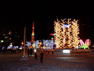 Det här med offentlig julbelysning är tydligen en stor grej här. I Roppongi, Shibuya och andra ställen i Tokyo så brukar de slå på stort med riktig maffig belysning. Naturligtvis hann jag inte gå dit och se det själv fast jag kunde njuta av min grannes kreativitet som ni kanske minns från tidigare inlägg. I Odori hade också sin "Christmas Illumination" som det kallas och den gick verkligen inte av för hackor, jag tror bilderna talar för sig själv.